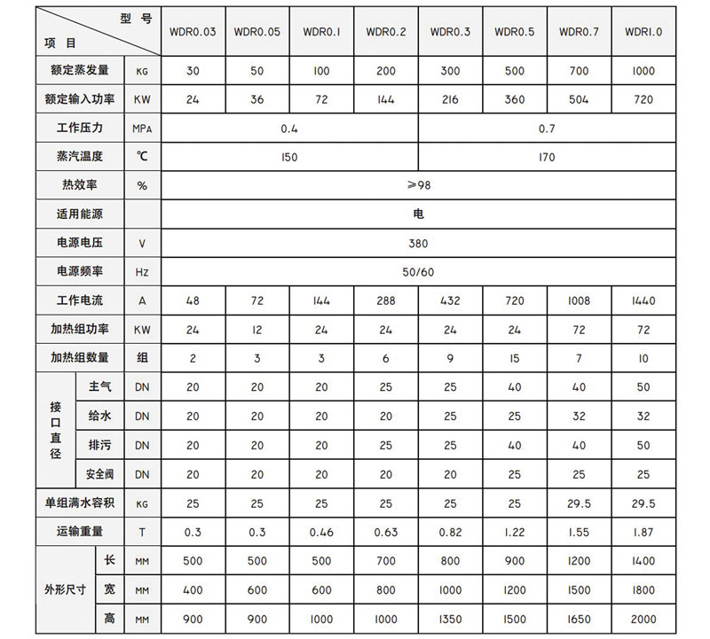 產(chǎn)品簡介: 電加熱蒸汽發(fā)生器,容水量小,加熱元件完全浸沒在水中并完全絕熱,效率非常高,輻射損失能降到最低。經(jīng)過精密計算設(shè)計,能蒸汽發(fā)生器迅速、高效地達到工作壓力。   WDR電蒸汽發(fā)生器采用低表面熱負荷電熱元件,每一元件均進行水壓及耐電壓試驗;接上電源及水源后即可工作。安靜、清潔,符合環(huán)保的要求,不會向大氣排放NOx(氮氧化合物)。電蒸汽發(fā)生器操作簡便,一鍵啟動、停止,3分鐘出蒸汽,運行負荷調(diào)節(jié)范圍大,維護簡便。每組電熱元件采用集中束型法蘭連接,獨立設(shè)置,機械強度高,安全可靠,更換方便,使用壽命長等特點。